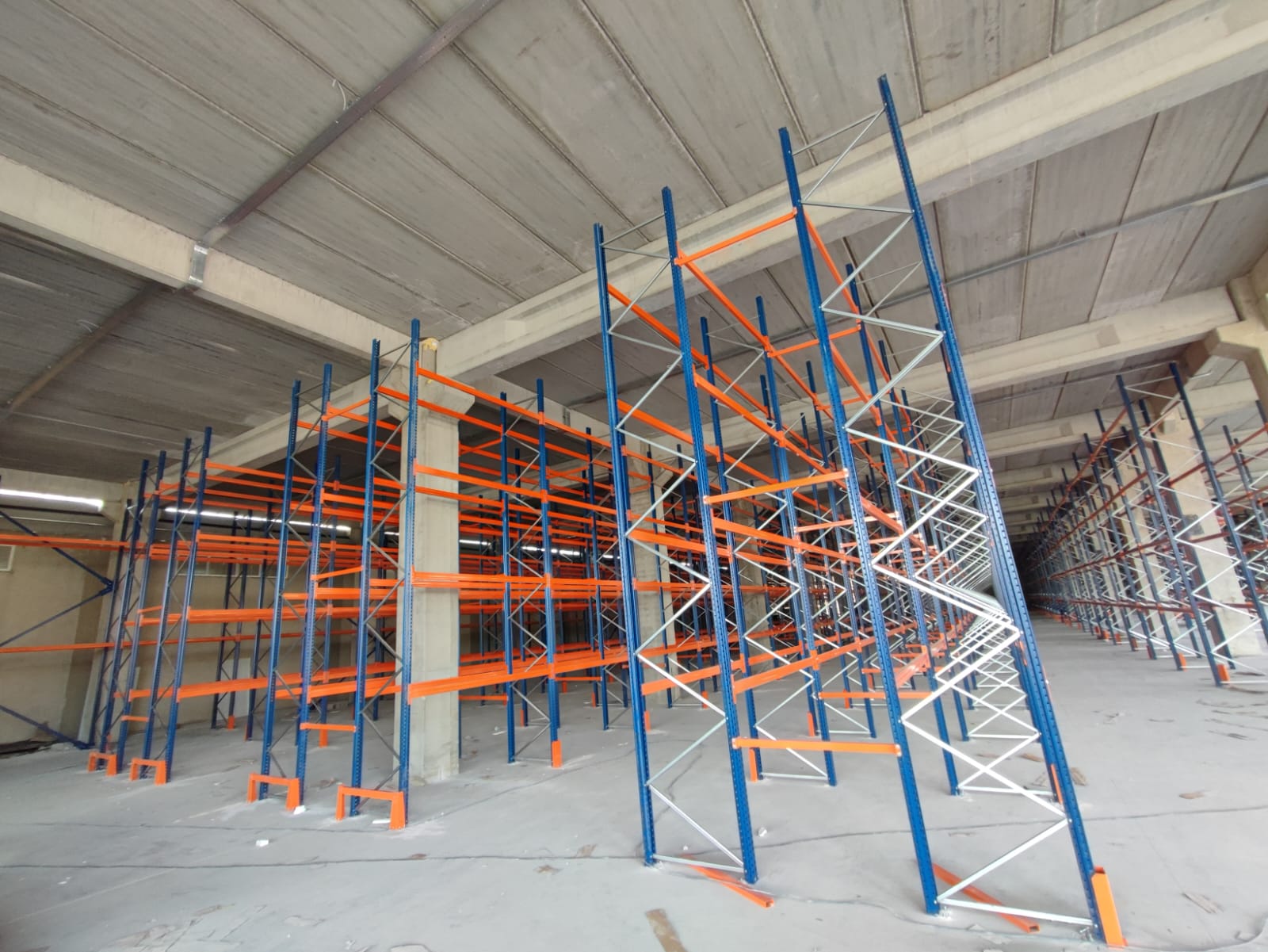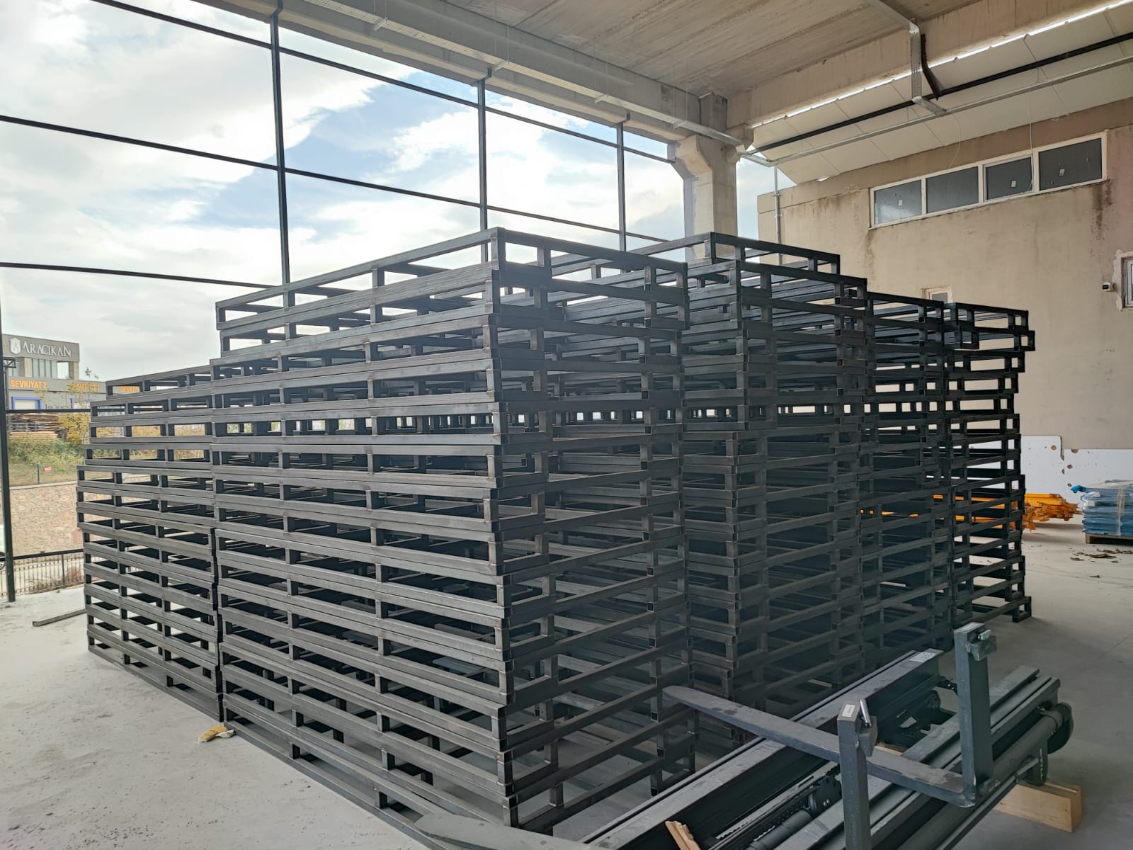 alana 7 metre yükselikğe sahip sırt sırta raf sistemi ve özel üretim metal palet.