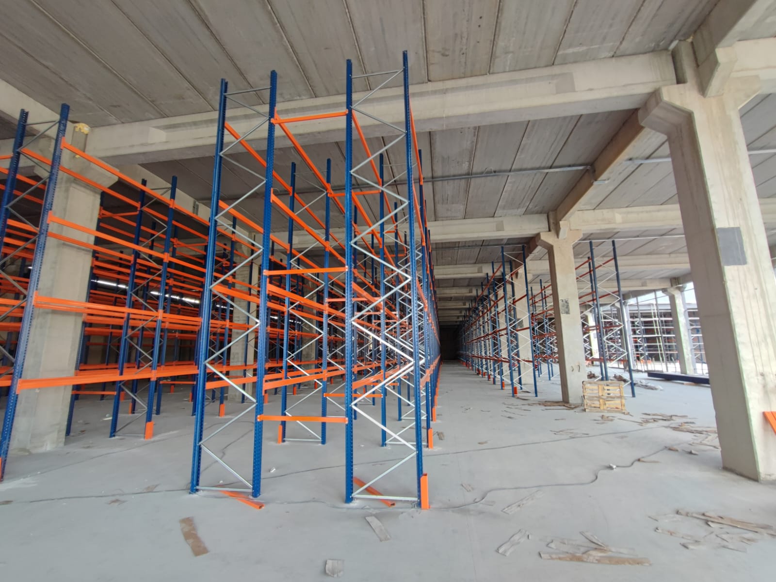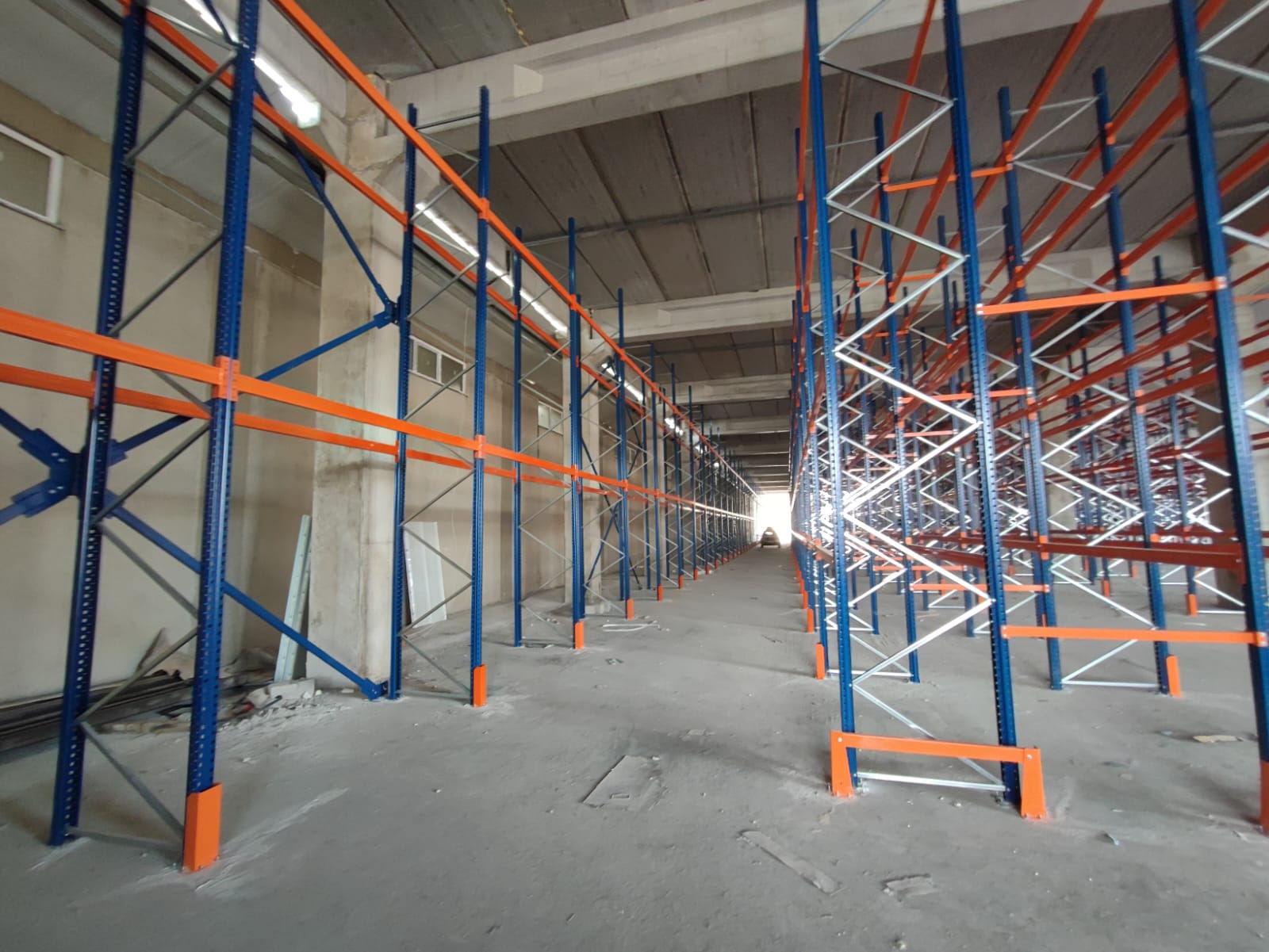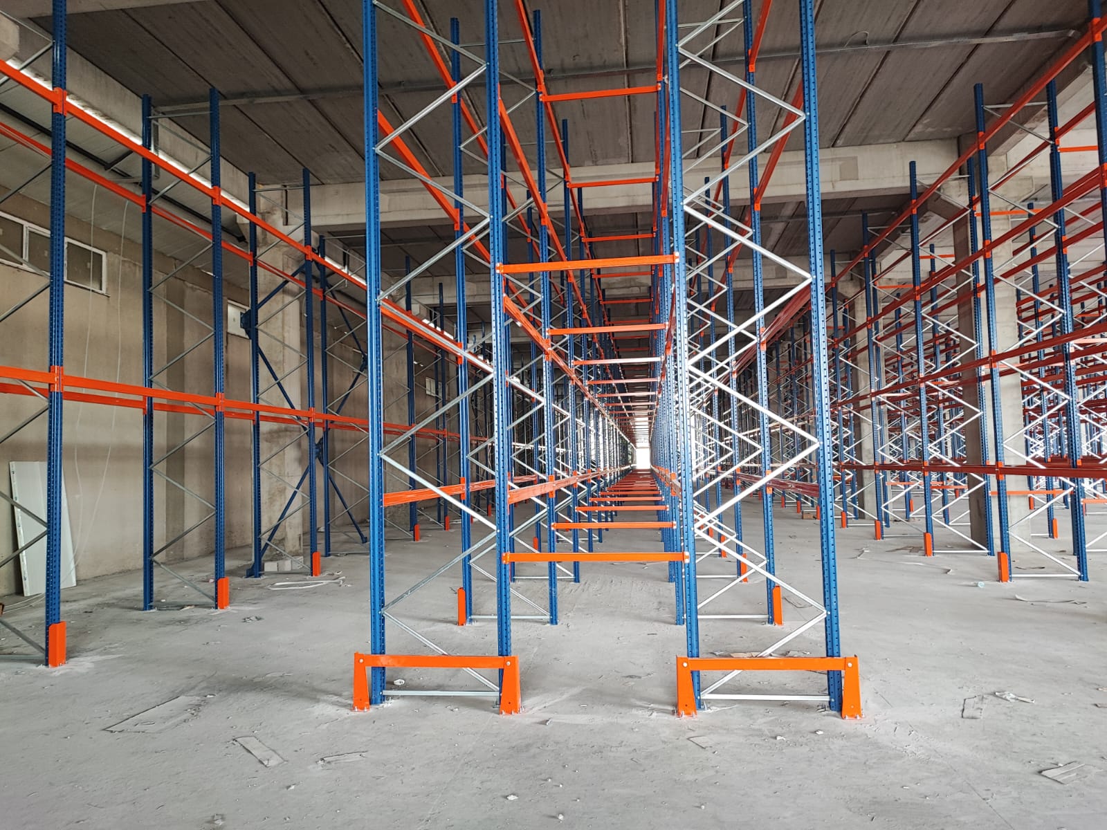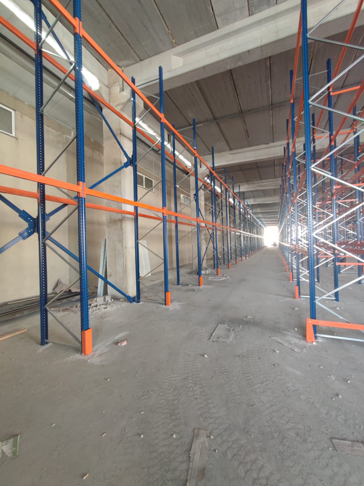 alana 7 metre yükselikğe sahip sırt sırta raf sistemi ve özel üretim metal palet.