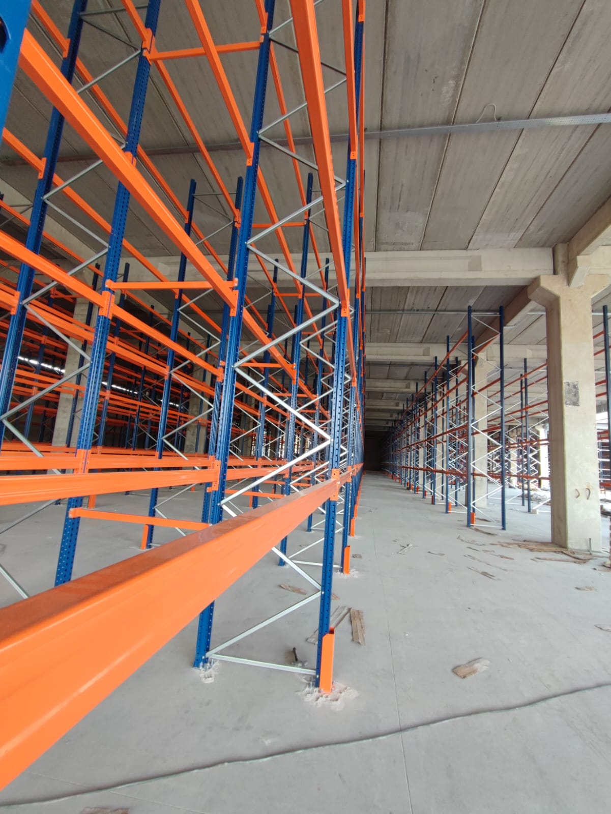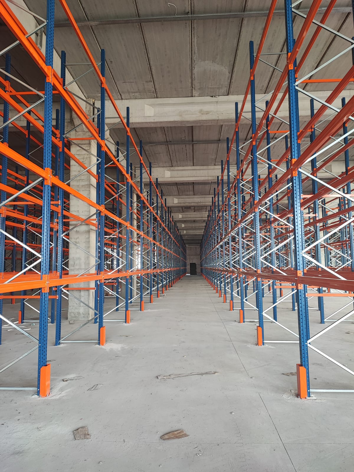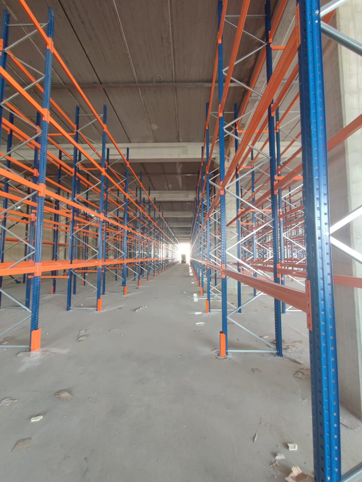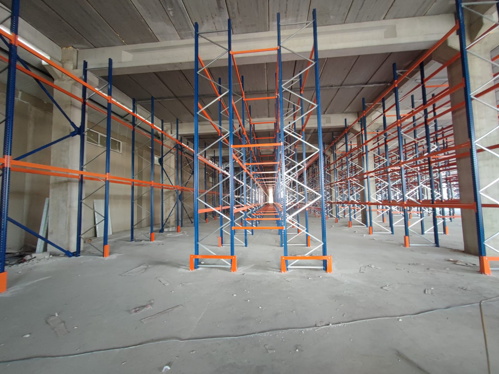 alana 7 metre yükselikğe sahip sırt sırta raf sistemi ve özel üretim metal palet.