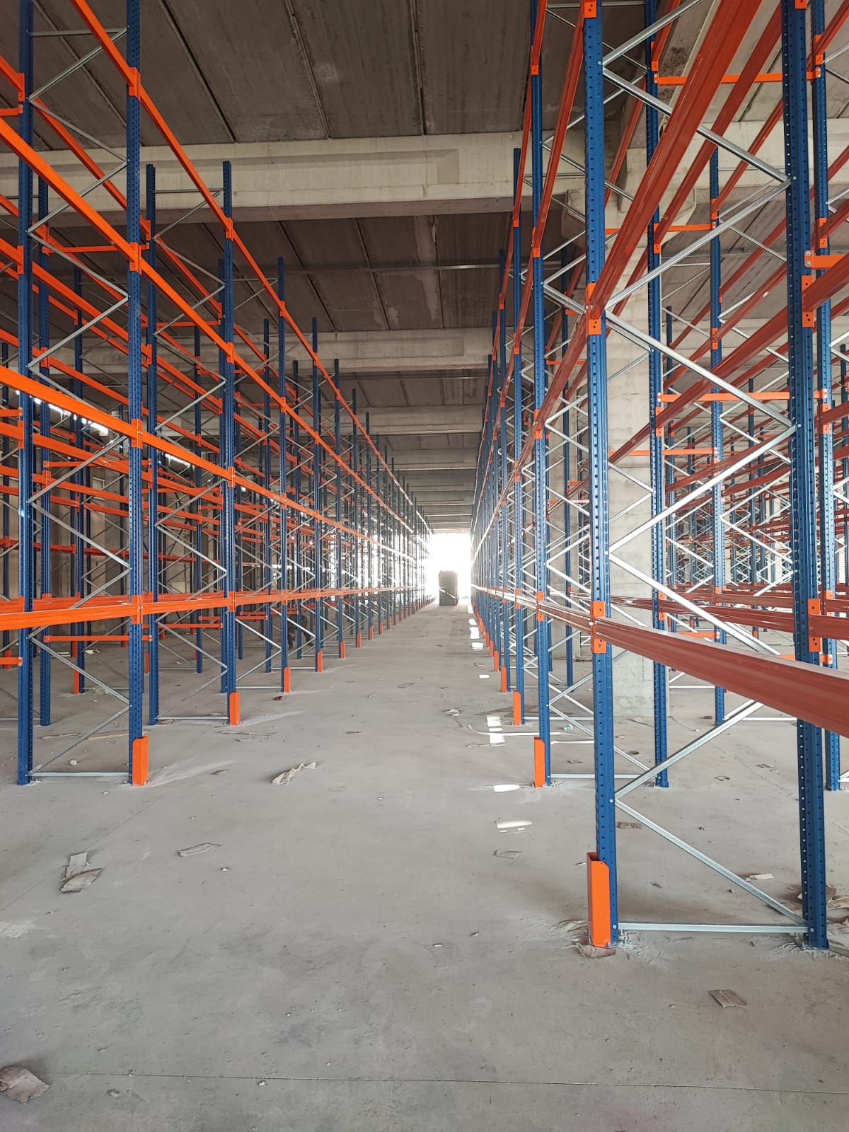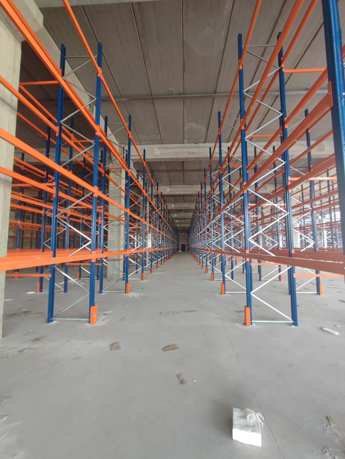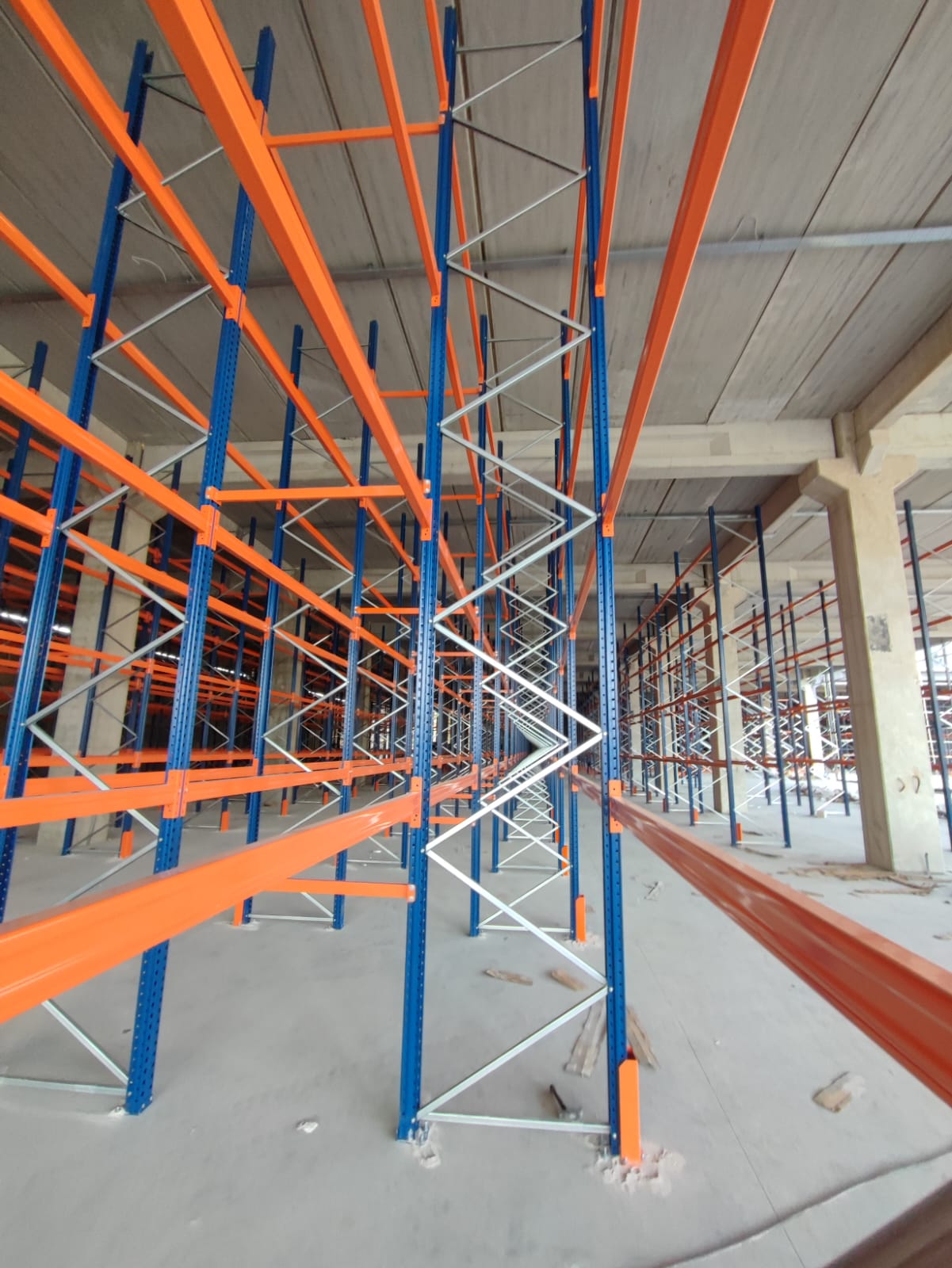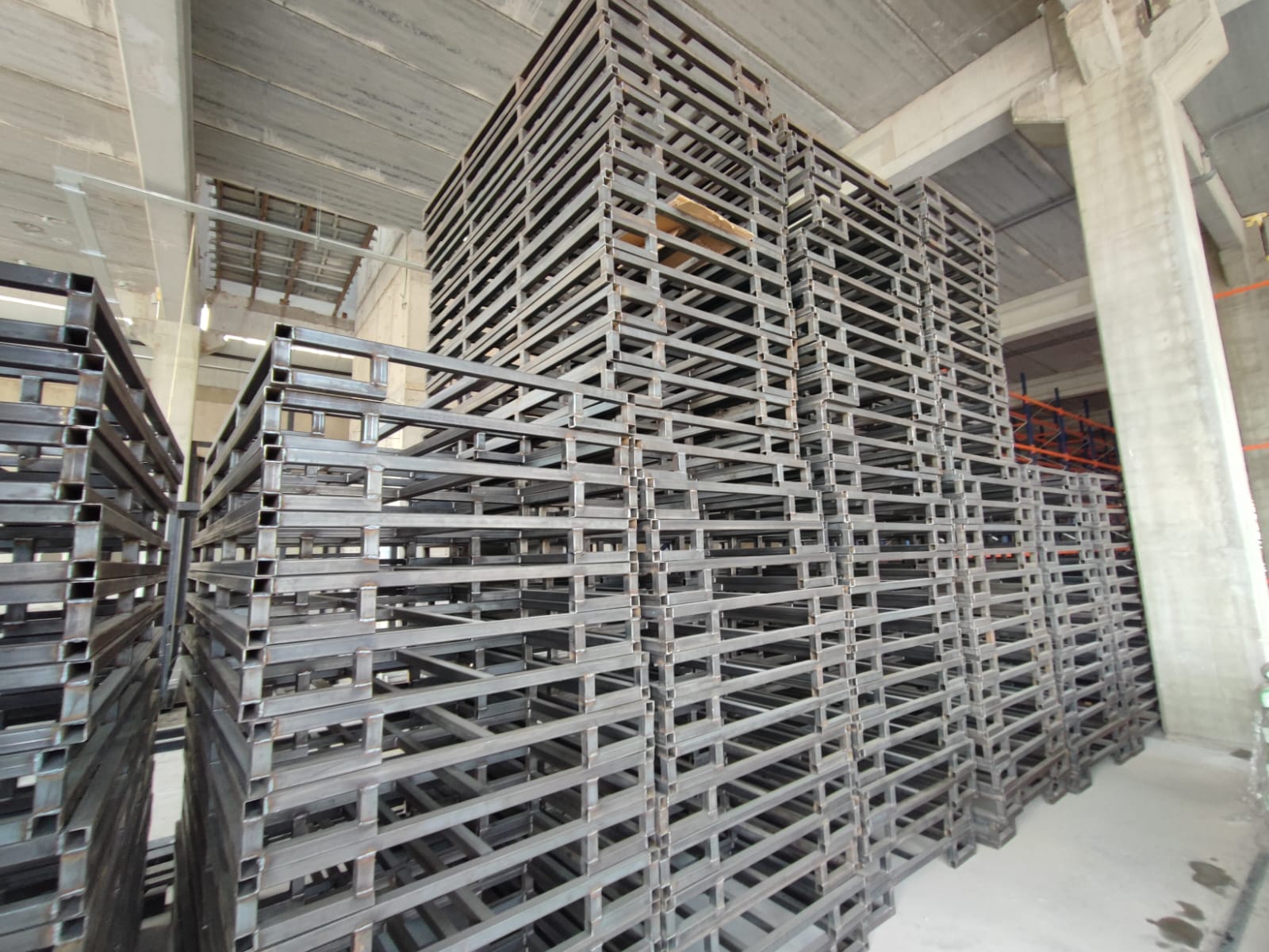 alana 7 metre yükselikğe sahip sırt sırta raf sistemi ve özel üretim metal palet.