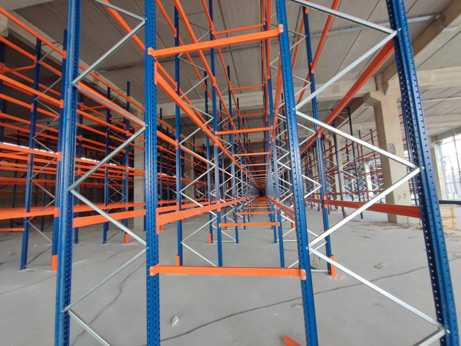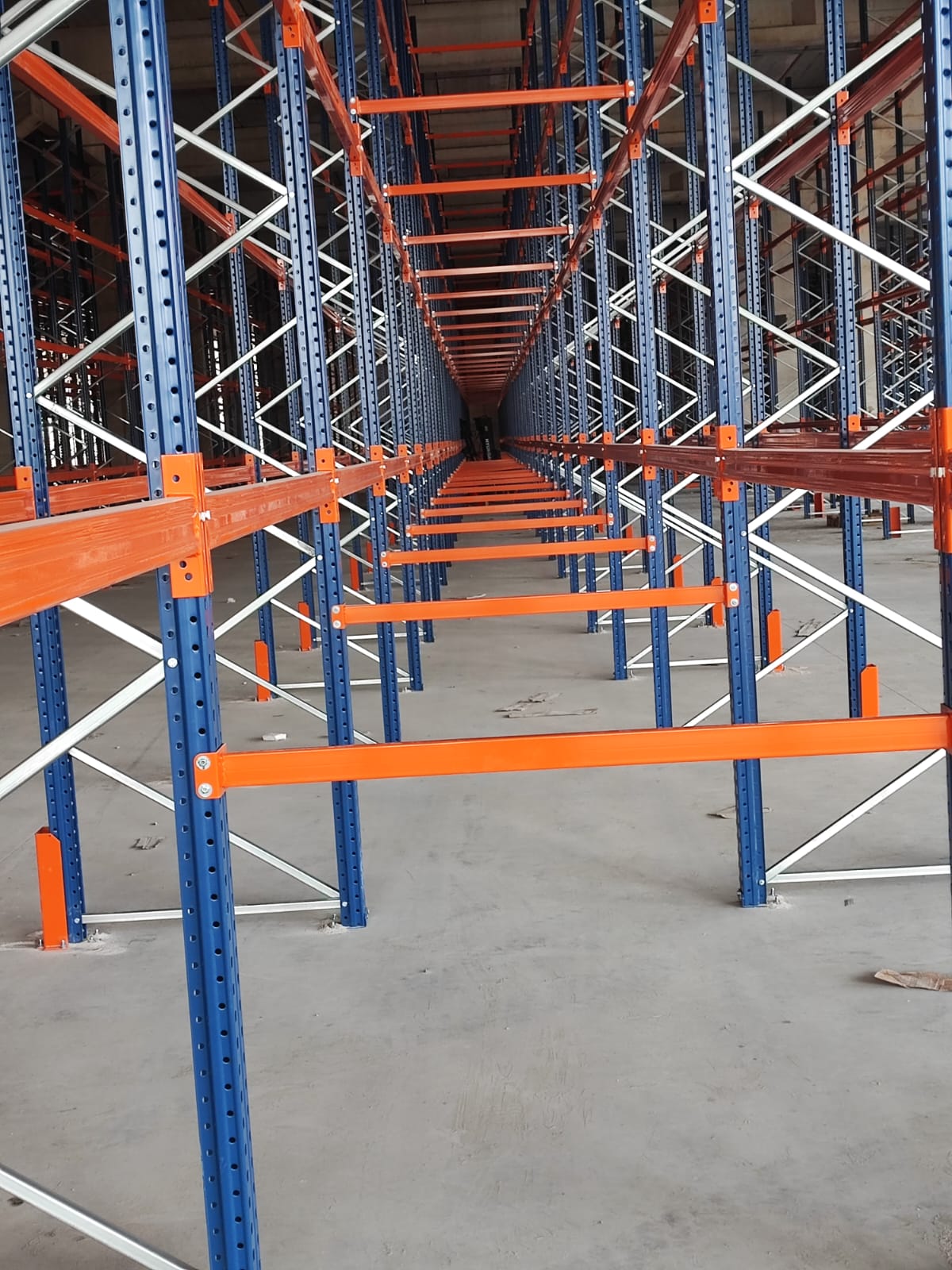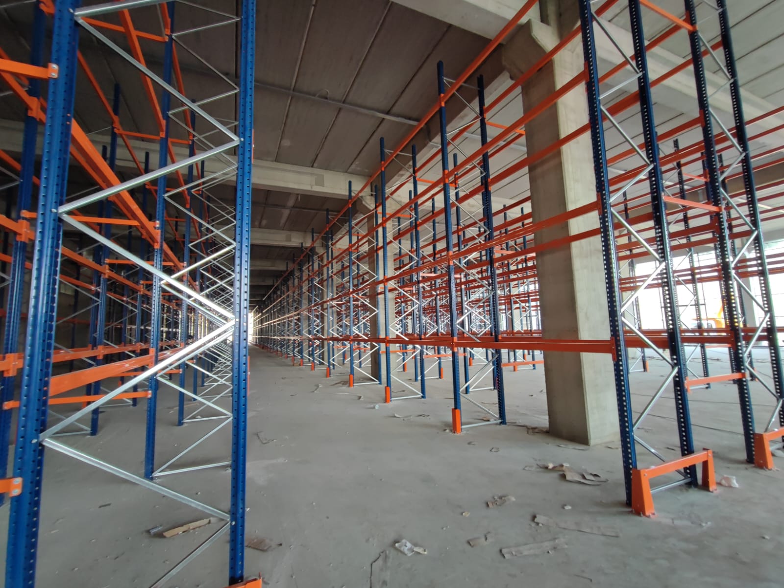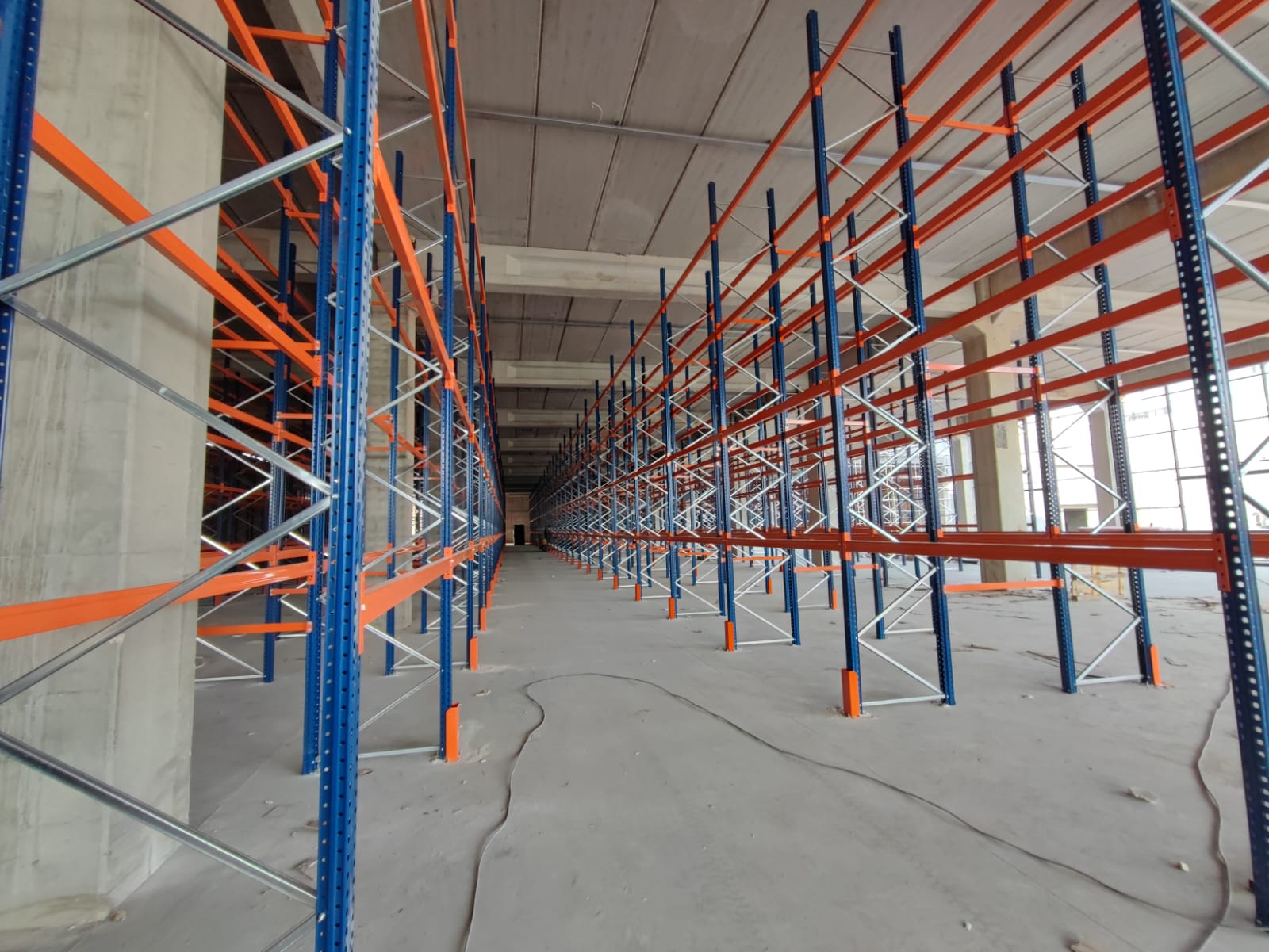 alana 7 metre yükselikğe sahip sırt sırta raf sistemi ve özel üretim metal palet.