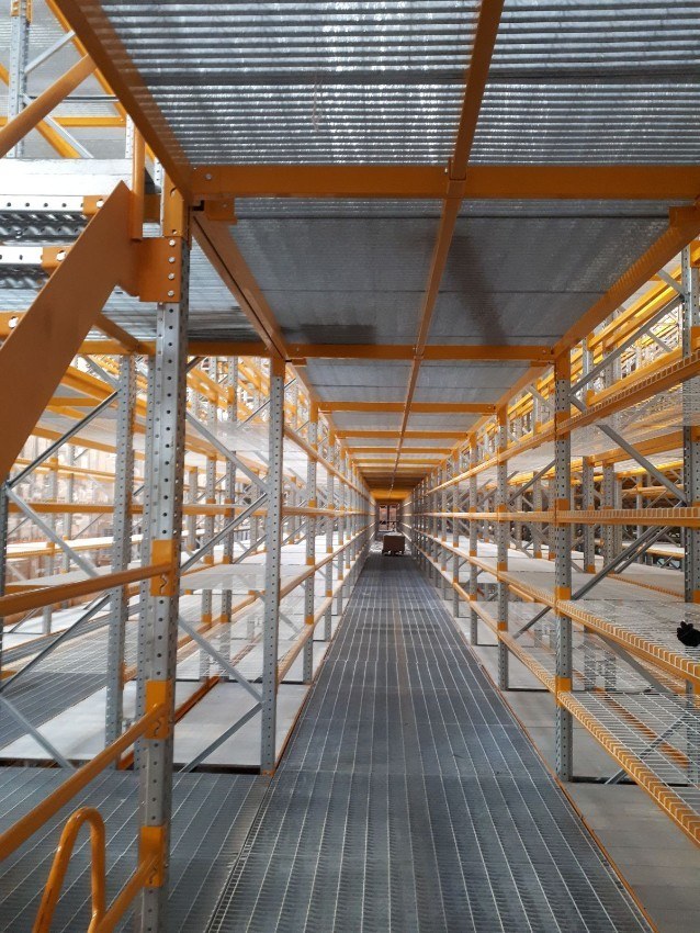 Mezzanin (Platformlu) Raf Sistemi, ağır ya da hafif tip raf sistemi kullanarak, özel yürüme yolları, korkuluklar, merdiven, yükleme kapısı vb. aksesuarların ilavesiyle, tavan yüksekliği uygun olan depo ve işletmelerde, ilave çalışma alanı yaratmak ve manuel sipariş toplama işlemi yapmak için tasarlanan çok katlı bir sistemdir.